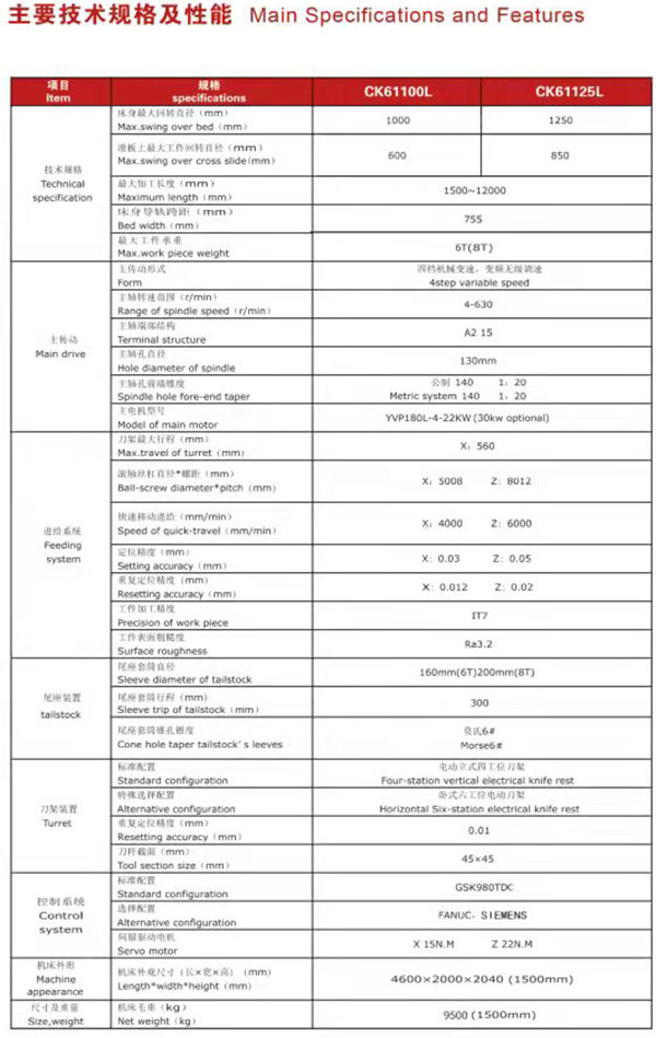 2、床身導軌超音頻淬火,床鞍及滑板導軌結合面采用“貼塑”處理,移動部件可實現微量進給,防止爬行。進給系統采用伺服電機、精密滾珠絲杠、高剛性精密復合軸承結構,定位準確、傳動效率高。主軸轉速高,調速范圍寬,整機噪音低。主傳動采用四檔檔內無級調速。